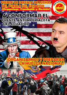 The Defense Front of the People’s Struggles – EC proposes the conformation of the ANTI-IMPERIALIST FRONT OF ECUADOR, as an political instrument for struggle and organization, that forms and organizes the worker’s, peasant, youth, indigenous not cooped masses, and urban people’s sectors to confront in a combative form the government, imperialism and the comprador bourgeoisie.