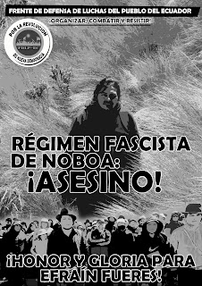 The fascist government of Noboa and its repressive and terrorist apparatuses have murdered our comrade Efraín Fueres in Cuicocha, Cotacachi. This crime marks a turning point in the people’s uprising: there is no turning back, no negotiation, no demobilization.
