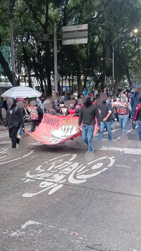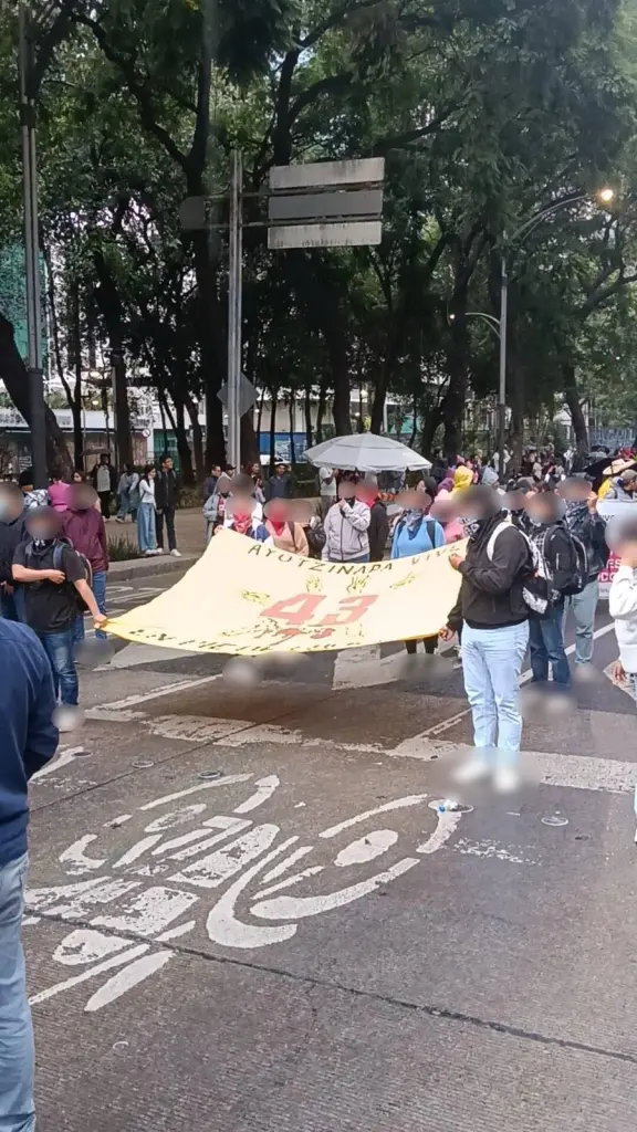 The mobilization was one of the largest in recent years. Families, students, workers, women’s collectives, unions, and people’s organizations marched shoulder to shoulder. The power of memories and outrage was palpable in the air. But we also faced the same reality as always: attempts to stop the protest by force. The riot police, which according to Claudia Sheinbaum’s official statement no longer exist, were there again, with their shields and helmets, ready to provoke and repress. The supposed “dissolution” of the riot police is as false as this government’s promises of justice.