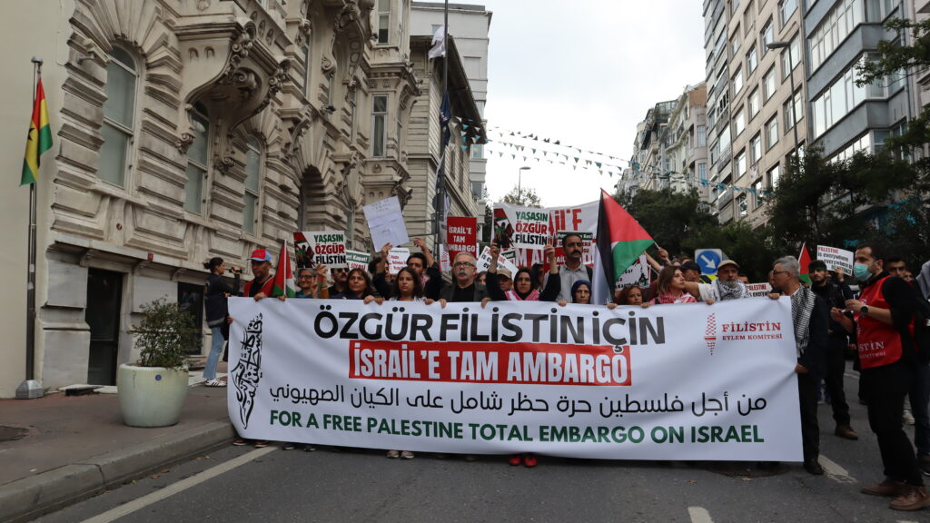 A demonstration in Istanbul took place gathering thousands of people in support of the Palestinian people under the slogan “Full Embargo on Israel for a Free Palestine”.