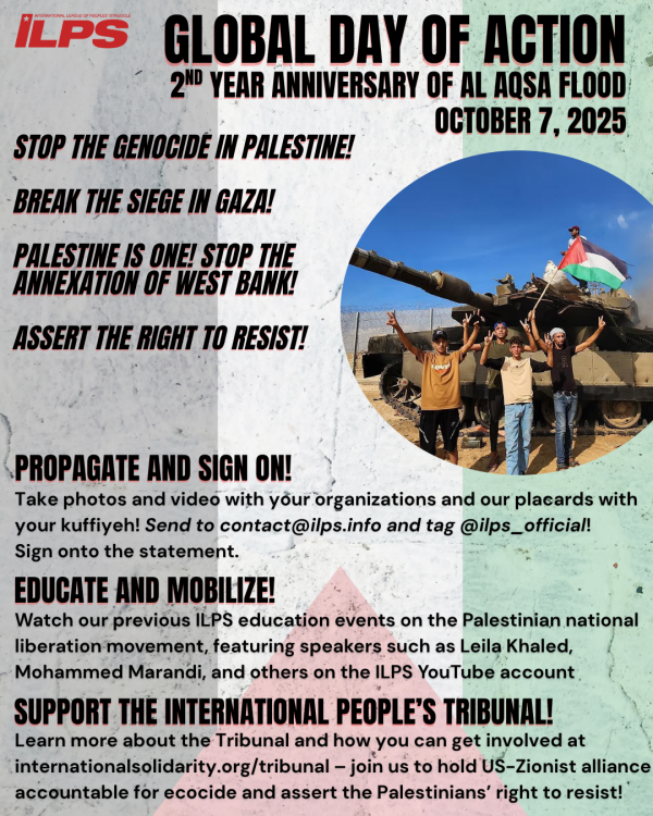 The International League of the People’s Struggles (ILPS) has also issued a statement on the anniversary of the Al-Aqsa Flood: