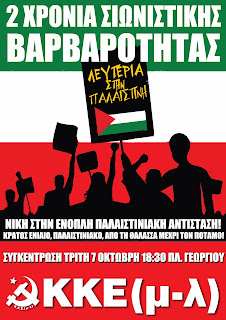 The Communist Party of Greece (m-l) [KKE(m-l)] calls for demonstrations in Patras and Athens on October 7, both at 18:30h.