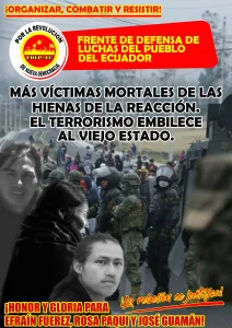Next post Ecuador: MORE MURDERS BY THE HYENAS OF REACTION. TERRORISM SHOWS DESPICABLE CHARACTER OF THE OLD STATE