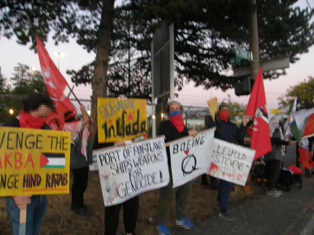 On Oct 7th people from across the Portland metropolitan area rallied at the port of Portland at an action hosted by Portland Anti-Imperialist Action with the support and attendance of other organizations. The demonstration highlighted the continued orchestration of the genocide in Gaza, carried out with weapons and parts which flow through this port, as well as in support of the national resistance factions in Palestine who lead the fight today for national liberation.