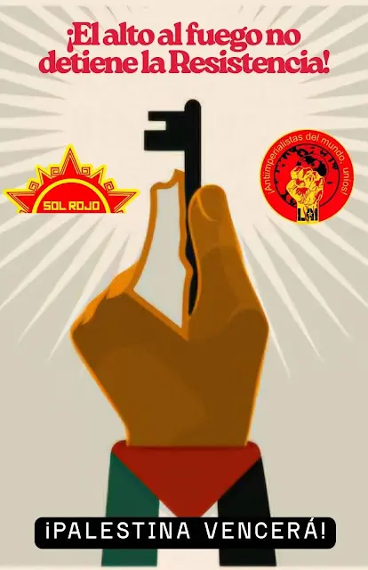Due to the aforementioned, the Current of the People Red Sun and the Promoting Committee of the Anti-Imperialist League (Mexico) call on our members, supporters, and allies to launch a new campaign of solidarity with the Palestinian Resistance, from today until the end of October, which should serve to maintain vigilance over the Zionist entity for compliance with the ceasefire, reinforcing solidarity with the Palestinian people and their heroic National Resistance.