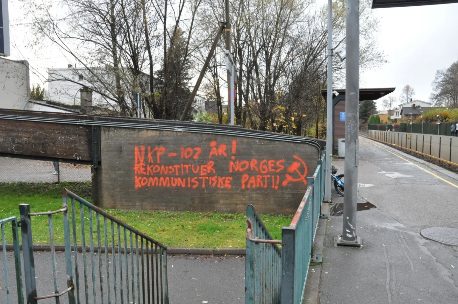 In Tiller, in the south of Trondheim, Norway, posters have been put up on the occasion of the anniversary. The posters read: “NKP 102 years! Long live Maoism! Down with revisionism!” and “Reconstitute the Communist Party of Norway, Red Front”