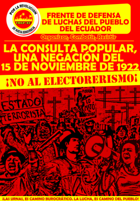 The FDLP-EC called not to vote and not to participate in the popular consultation because ideologically and politically, it’s the right thing to do. Regardless of the result, the big bourgeoisie and the big landlords will continue doing what they deem appropriate, whether or not it is written in the Constitution. It must be addressed: behind the government, behind the so-called bourgeois-big landlord democracy and elections, a class dictatorship is sustained that will do even the unimaginable to maintain the power in their hands.