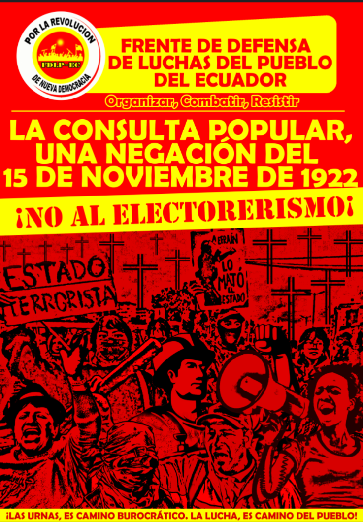 On November 15th we commemorate this historic date for the working class strengthening FDLP-EC and assuming a critical and combative position against the leaders of revisionism and opportunism who diverted the indigenous-popular uprising for participation in the elections, disfiguring completely the correct political line that should lead the masses to strength all forms of action against the old State, its institutions, its forms of organization and its mechanisms of alienation, factors that block the revolutionary transformation of the old society.