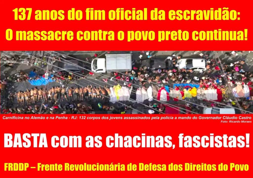 This campaign joins the efforts done by the newspaper A Nova Democracia (AND) which also issued a campaign, “Enough massacres!”, which articles and actions can be read here: