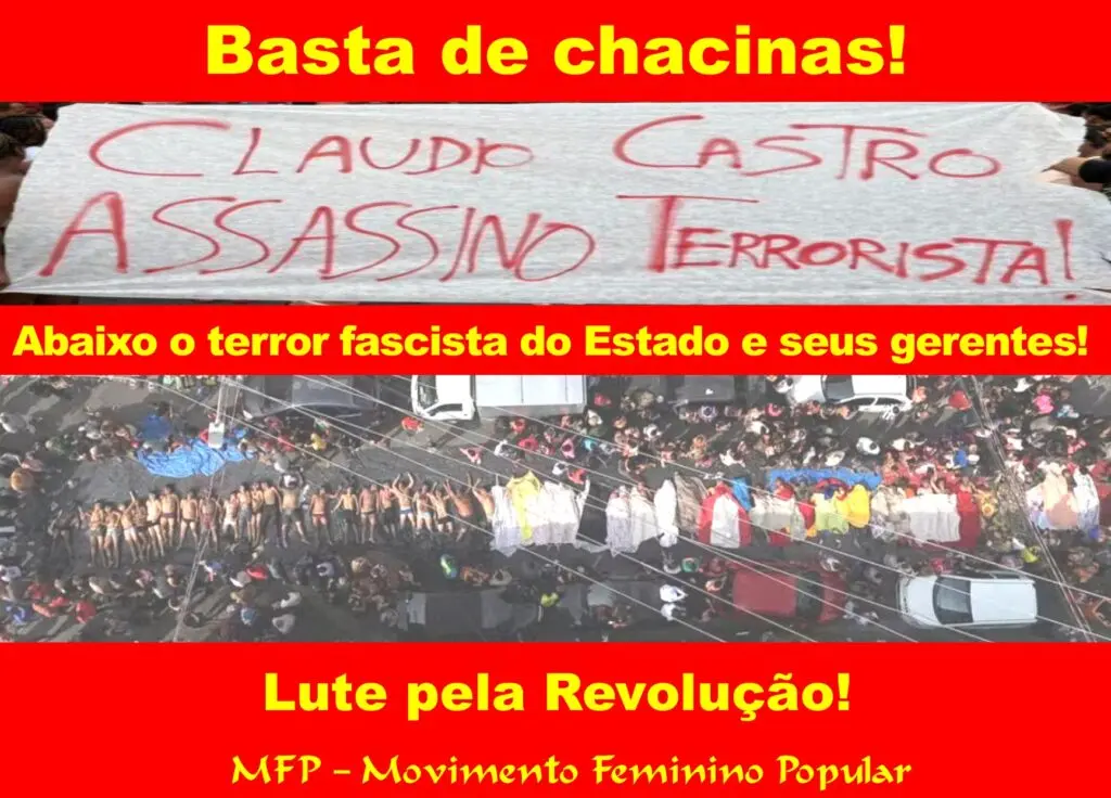Recently the Revolutionary Front for the Defense of the Rights of the People (FRDDP) and the People’s Women’s Movement (MFP) have issued posters and joined the campaigns in Brazil against the massacres of the people. We hereby share the posters issued: