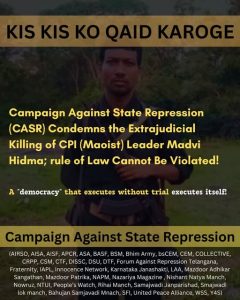 We offer heartfelt tributes and proletarian internationalist salutes to all the immortal martyrs including Comrade Hidma who were martyred in this massacre. In this sad hour, we express our deepest condolences to the Central Committee of the CPI (Maoist), including all party members, the People’s Liberation Guerrilla Army, the Indian proletariat and the general revolutionary people, and the bereaved family members.