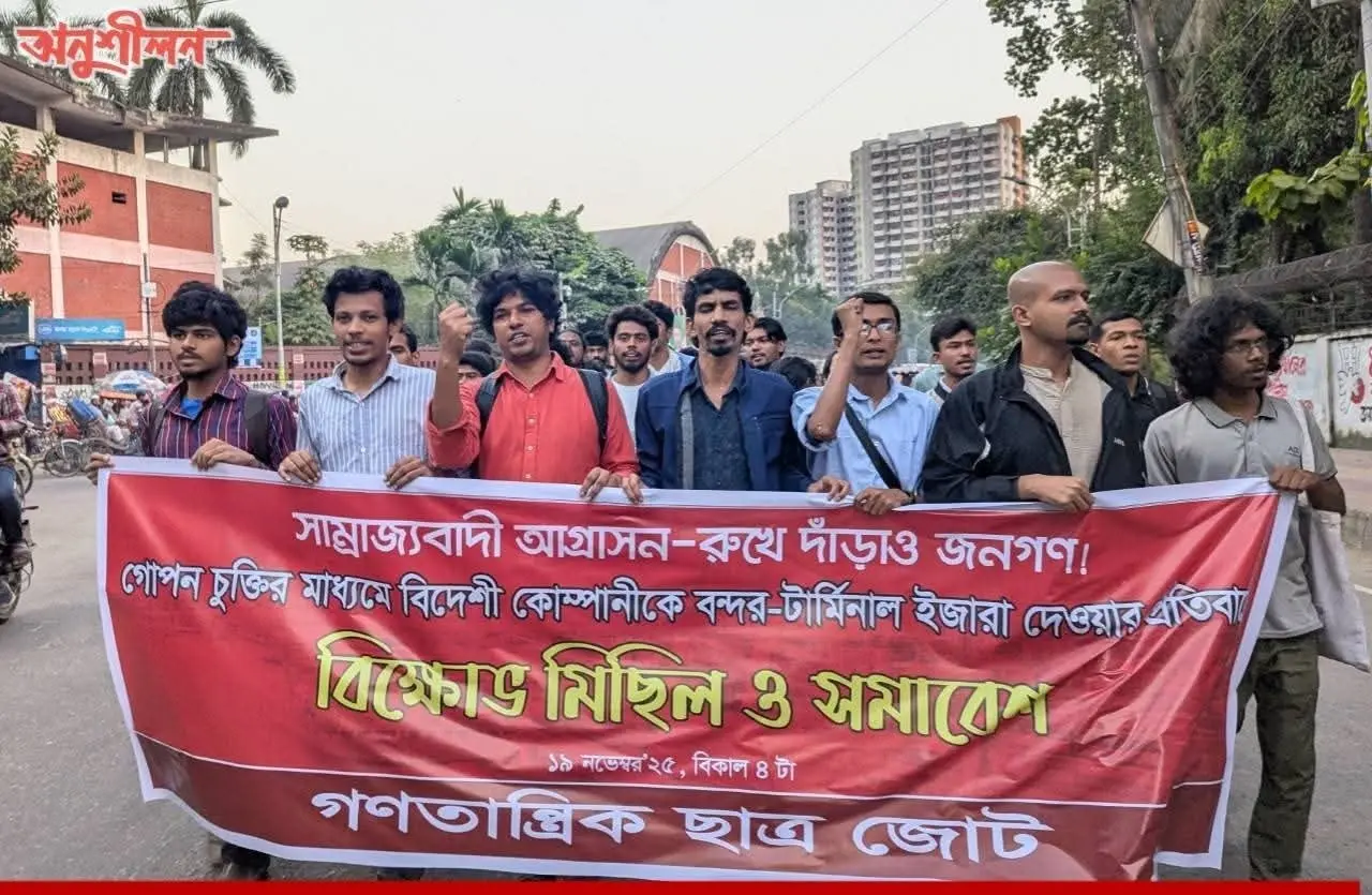 El Movimiento Juvenil-Estudiantil Revolucionario (RSYM) de Bangladés ha informado sobre movilizaciones llevadas a cabo por la Alianza Democrática de Estudiantes contra la entrega de terminales del puerto a compañías extranjeras mediante acuerdos secretos.