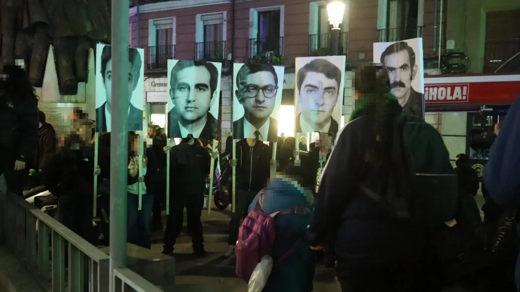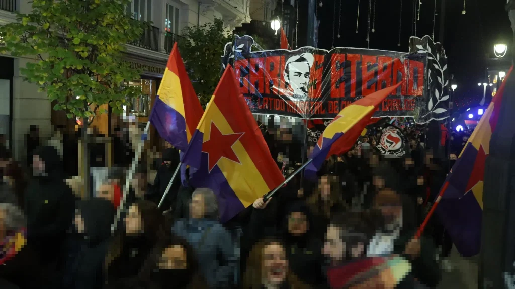 We hereby share some pictures and videos that we received per e-mail. An anti-fascist demonstration took place in the capital of the Spanish State on November 22, on occasion of the 50th anniversary of the death of the dictator Francisco Franco.