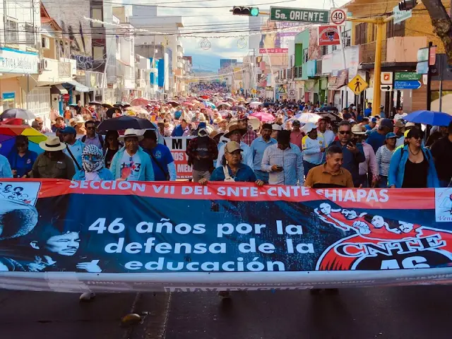 This 15th of December democratic teachers of Section VII of the National Coordinating Committee Education (CNTE) workers held a mobilization in Tuxtla Gutiérrez. Chiapas commemorating the 46th anniversary of the founding of the CNTE which occurred precisely in this territory on December 17 and 18, 1979. This mobilization has been important because since enables a more focused stand of the national teaching profession, reinforcing the demand for the repeal of the so-called “educational reform” of EPN-AMLO; the repeal of the 2007 reform to the ISSSTE law; the defense of the right retirement and pensions for education workers and against UMAS and AFORES system; ratifying the 22 Guiding Principles of the movement teachers for the democratization of the country, of public education and of SNTE.