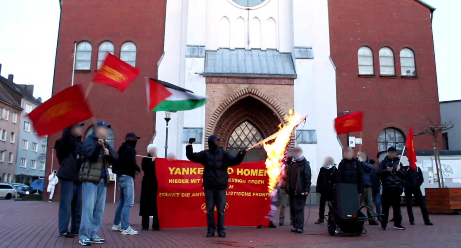 Featured image: A Yankee flag is burned in a rally carried out in Dortmund. Source: Dem Volke Dienen.