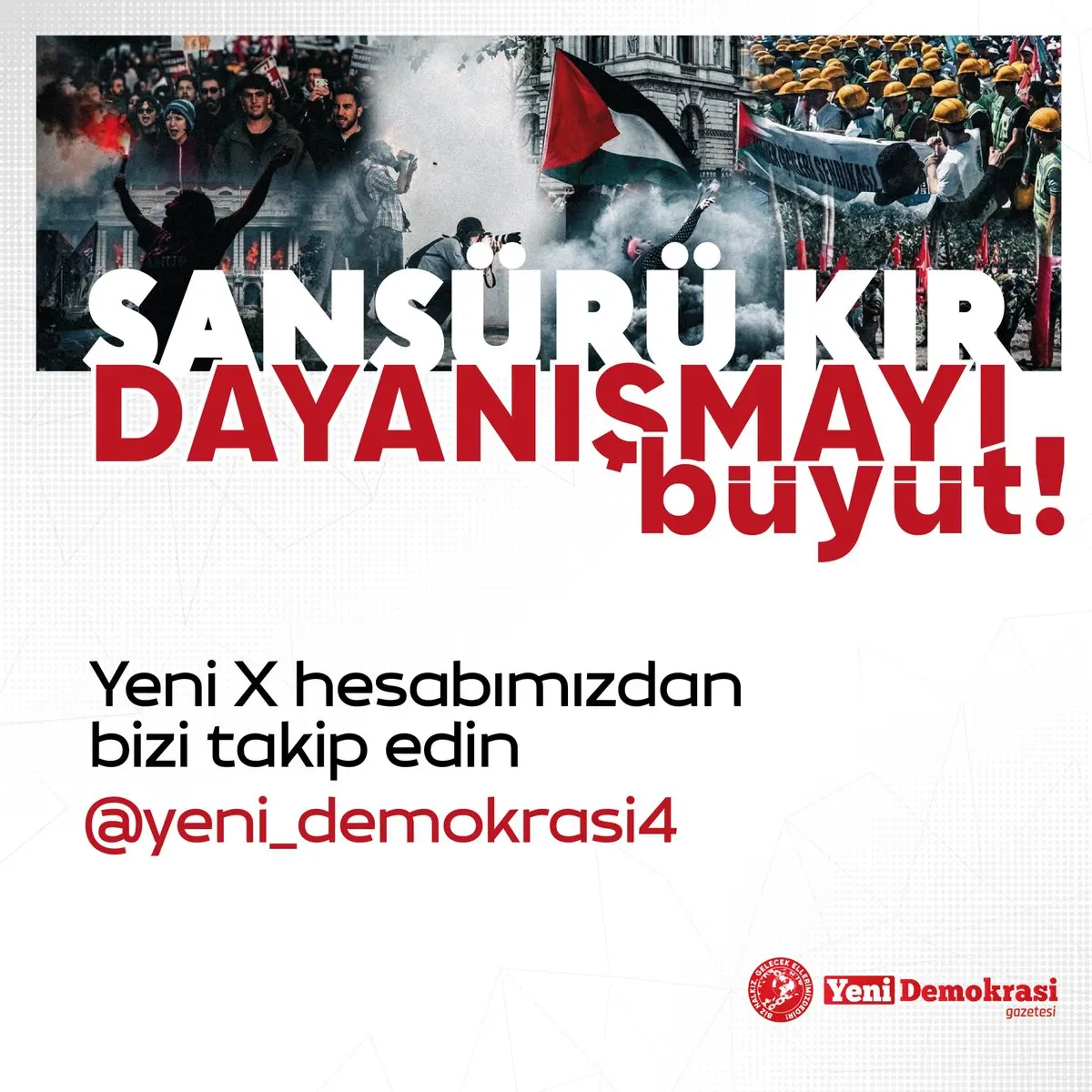 Our X account titled “@yeni_demokrasi3” has been blocked in Türkiye. Let’s grow solidarity by following our new account.
