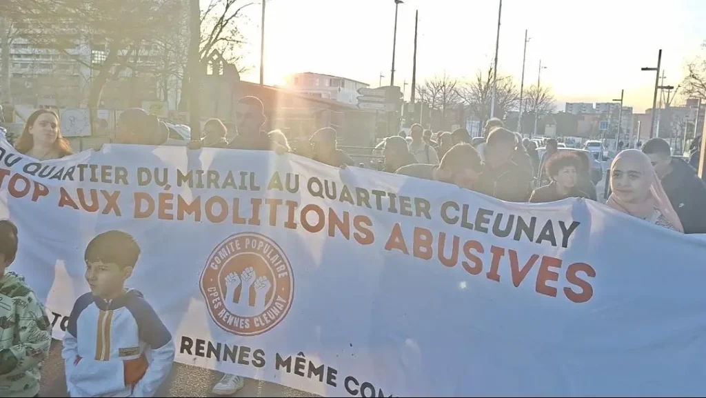 There were also delegations from CPES, from neighborhoods of Cleunay, Rennes, who highlighted in their speeches that these same anti-people measures and “renewal” policies in popular neighborhoods are being carried out by the “left-wing” mayor in Rennes and the right-wing mayor in Toulouse.