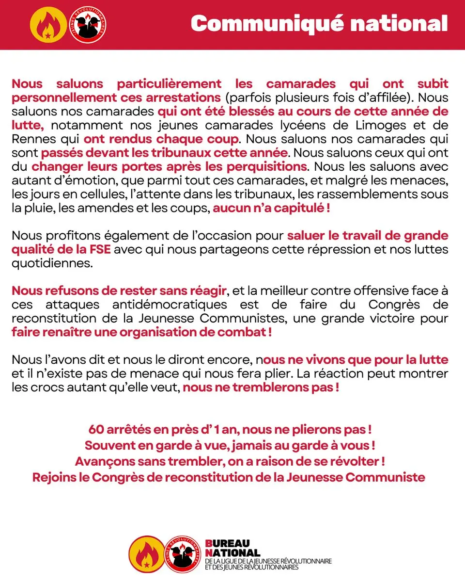 • France: Statement from the National Bureau of LJR and JR