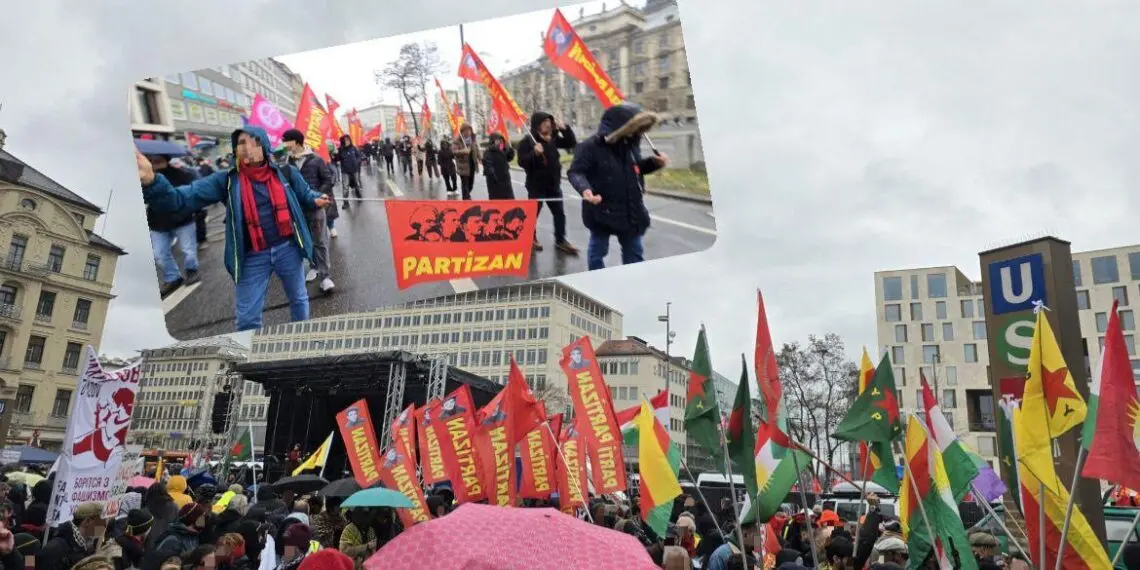 The action began with a rally at Stachus Square in Munich after the crowd had gathered. The speeches addressed the division of markets by the imperialist powers and their policies of armament and aggression. It was emphasized that NATO is a hostile instrument of war against the peoples of the world, and a call to struggle was made. Speeches were also made from the podium on behalf of the Rojava Women’s Councils and the Palestine Committee. Afterwards, demonstration marches formed and the march began. The masses from Partizan and AGEB took their place with their slogans both at the rally site and during the march. During the march, slogans such as ‘Long live international solidarity,’ ‘Biji Berwedane Rojava’ and ‘Freedom for Palestine’ were chanted.