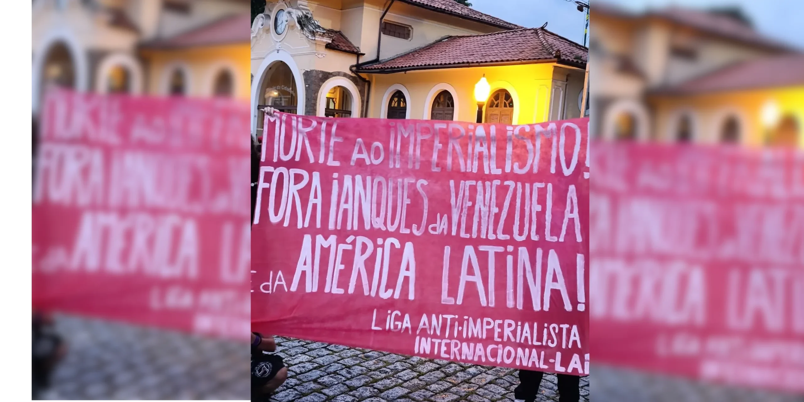 As part of the protest action, a brigade was formed in the vicinity of the station, whose members spoke to passing workers, distributed leaflets from the International Anti-Imperialist League (AIL) about this invasion, and presented issue No. 260 of the newspaper A Nova Democracia from November and December 2025.