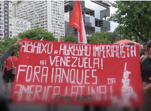 The International Anti-imperialist League (AIL), in its speech, once again called on the people to join the popular struggle against imperialism, emphasizing the need to take this struggle to the streets. In addition, it raised high the banner of the Agrarian Revolution as the main anti-imperialist struggle in the country, and paid tribute to Comrade Flecha, who was brutally executed on the morning of January 23 in an operation by the Special Operations Battalion (BOPE) of the Mato Grosso Military Police in cooperation with the repressive forces of Rondônia. A month earlier, the AIL had already organized a large demonstration in solidarity with Venezuela in the capital of Rio de Janeiro.