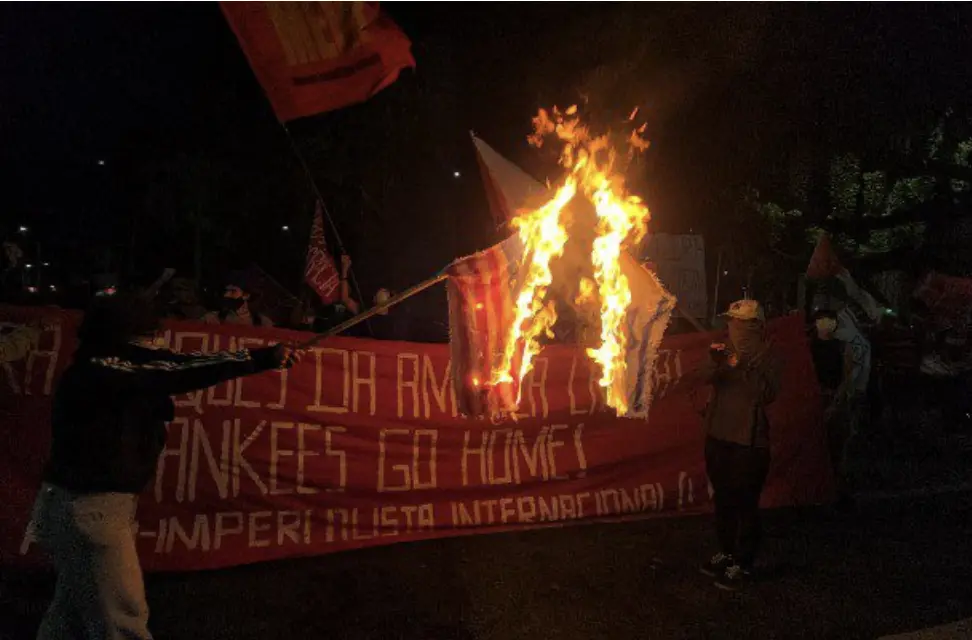 Brazil (AIL): Protesters hold anti-imperialist demonstration in front of the Yankee Consulate