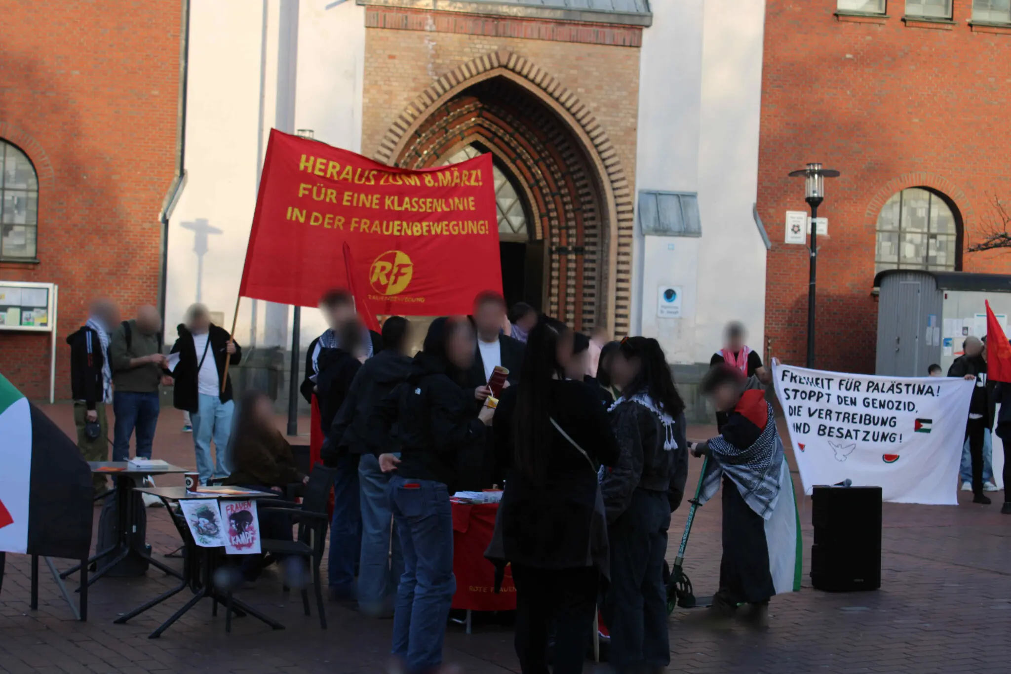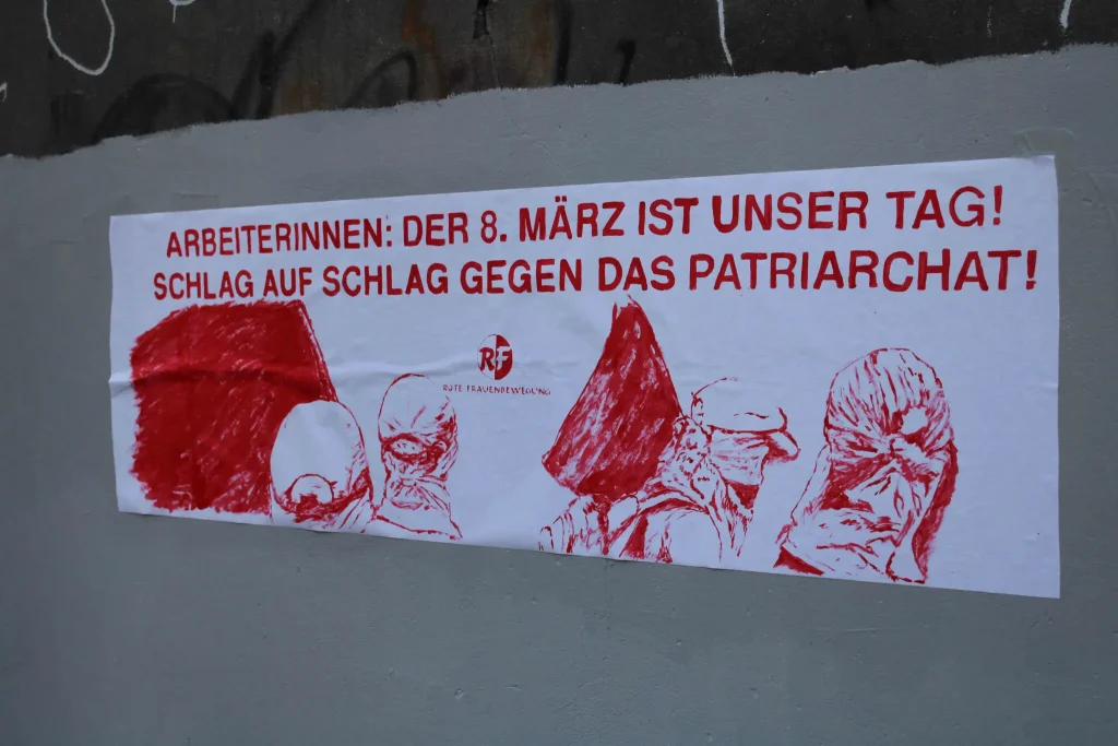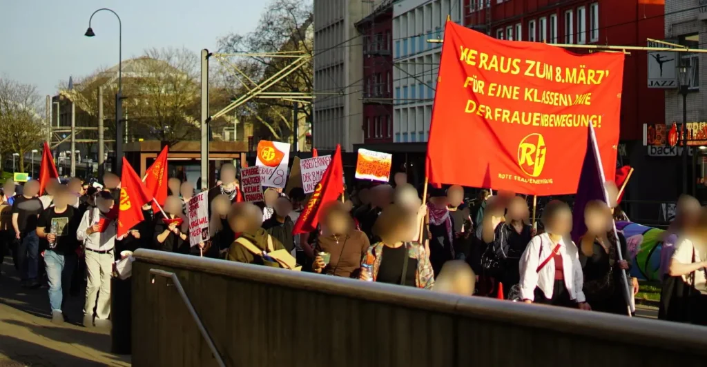 Similarly, the Red Women’s Movement took to the streets in Cologne with the slogan “Forward with 8th of March! For a classist line in the women’s movement!”.