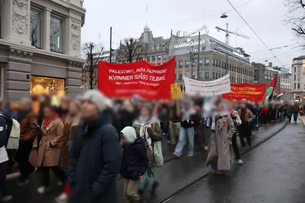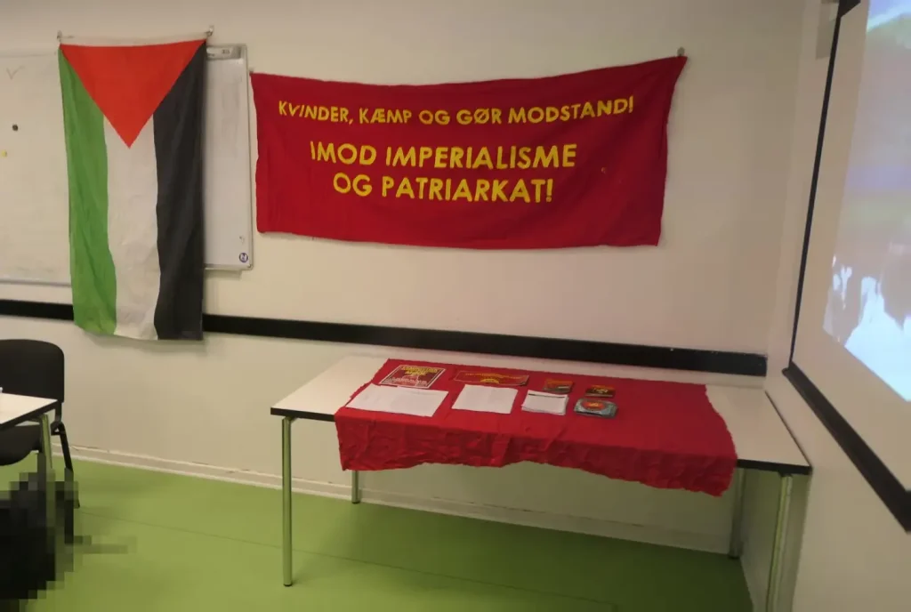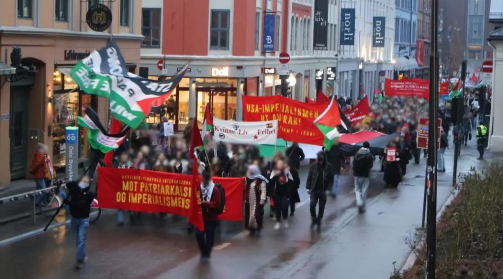 Kampkomiteen participated in demonstrations in Kristiansand, Trondheim, Bergen and Oslo. In the capital of Norway, according to Kampkomiteen, more than 1,000 people gathered in its bloc. In all demonstrations, the struggle of Palestine was highlighted with slogans, banners and flags denouncing the massacre. Slogans such as “Wave for wave, blow for blow, against imperialism and patriarchy”, “Get out of Iran!”, “Get out of Sudan!”, and “Lal salaam”were also shouted. In Kristiansand, a cultural meeting was done in a cafe after the demonstration.