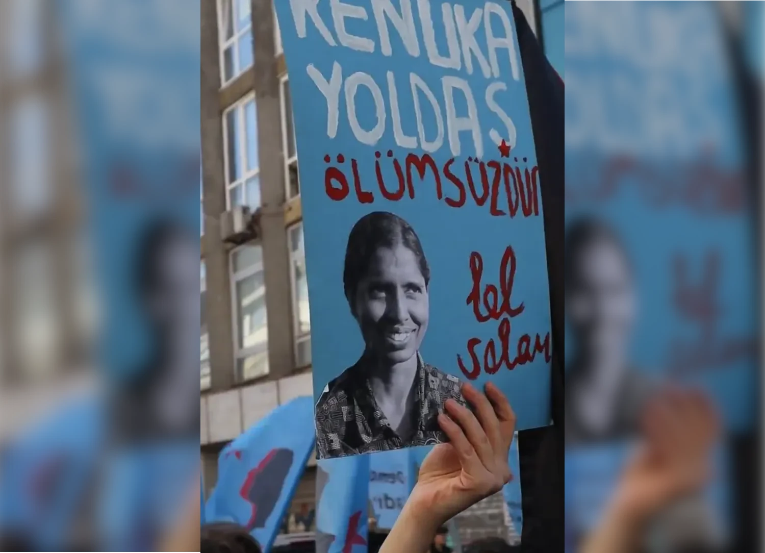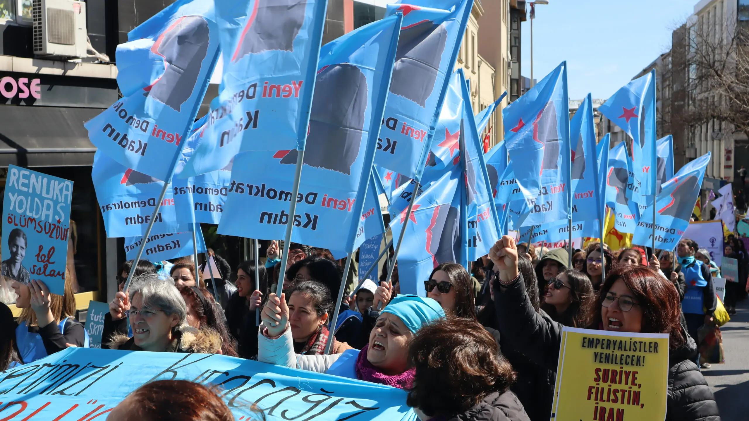 Featured image: Turkish activists carry a poster honoring the Indian comrade Renuka. Source: X account of Yeni Demokrat Kadin.