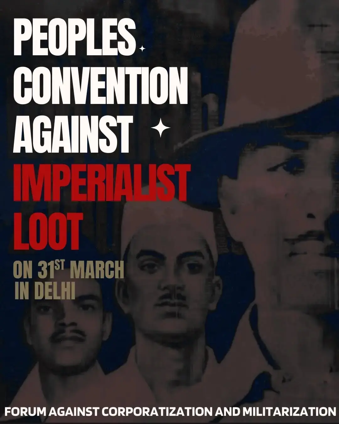 FACAM appeals to all progressive, justice loving individuals and organisations to join our “People’s Convention Against Imperialist Loot” on 31st March, 2026, at Delhi. OPPOSE IMPERIALIST LOOT! STOP OPERATION KAGAAR! SCRAP SURAJKUND SCHEME!