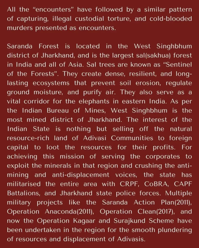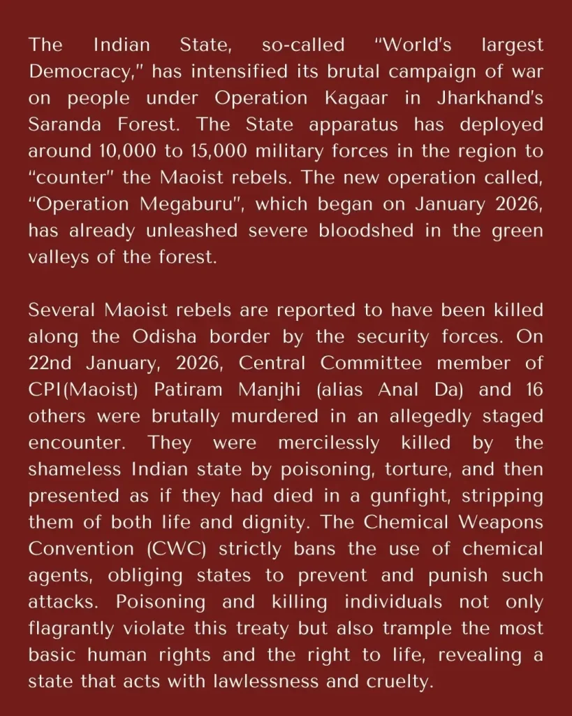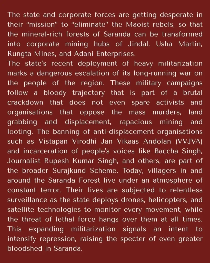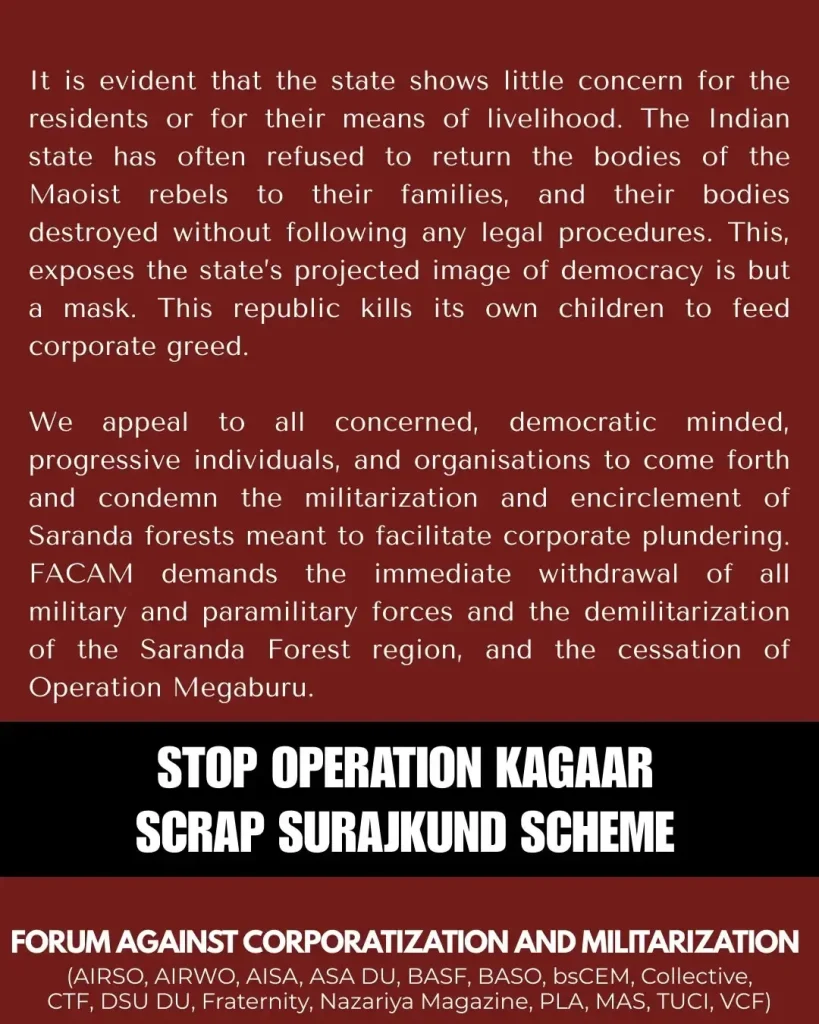India – FACAM: Statement Against the Militarization and the Encirclement in the Saranda Forest