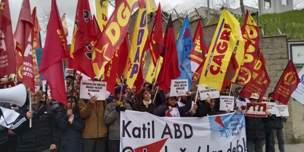 Featured image: Anti-NATO and the Anti-imperialist War Alliance, of which Partizan is a member organization, demonstrating in front of the US consulate in Istanbul. Source: Yeni Demokrasi