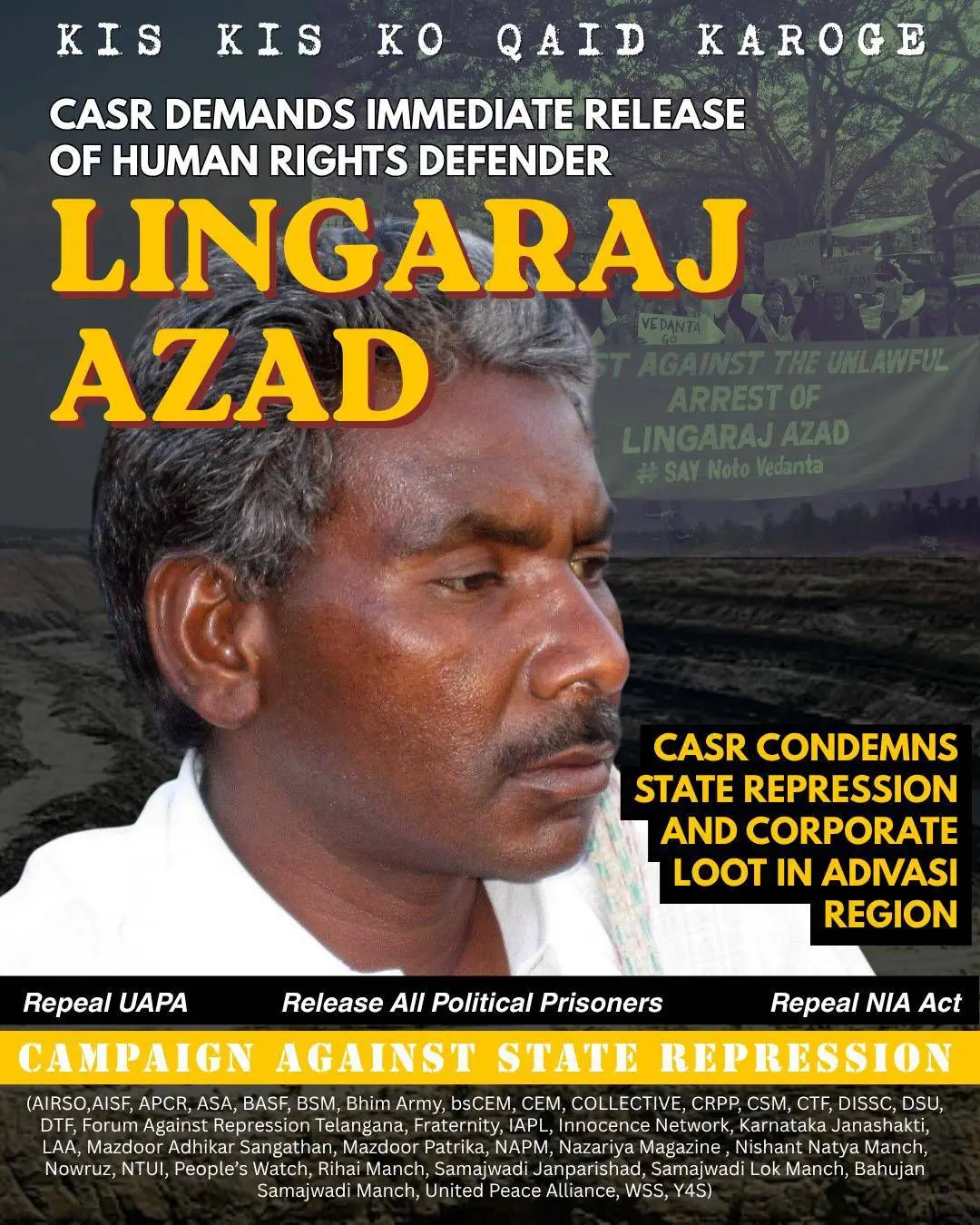 CASR DEMANDS IMMEDIATE RELEASE OF LINGRAJ AZAD CONDEMNS STATE REPRESSION AND CORPORATE LOOT IN ADIVASI REGION