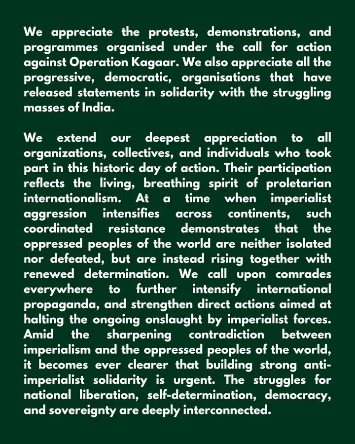 InFACAM, India, International Campaign, Operation Kagaar, Proletarian internationalism, Protests
