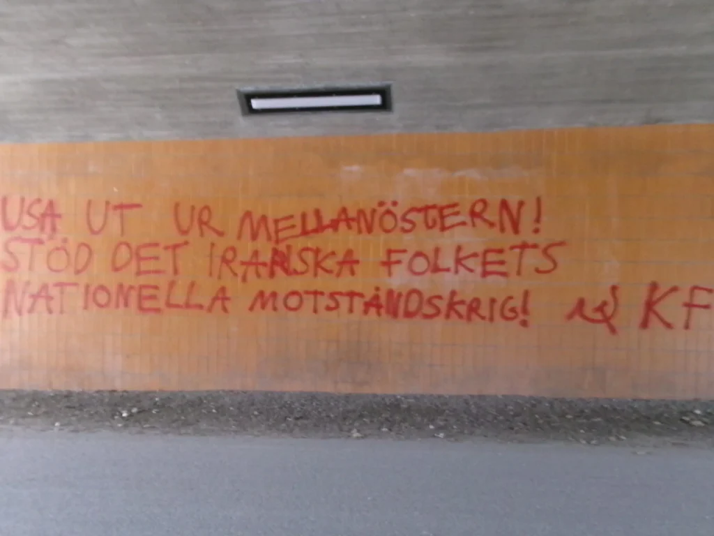 In Sweden, graffiti actions as well as a banner drop have been carried out by the Communist League in support of the Iranian national war of resistance, Kommunisten reports.
