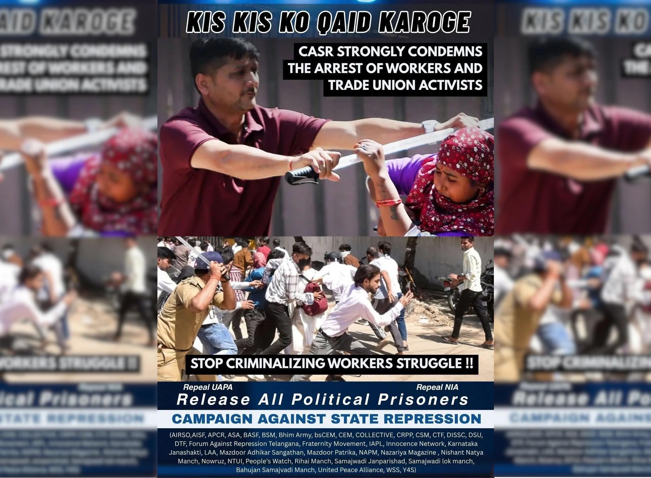The Campaign Against State Repression strongly condemns the ongoing crackdown on trade union activists, social activists, and hundreds of workers protesting against harsh working conditions, minimum wages, job insecurity, and unsafe workplaces. Women workers, including domestic and informal sector workers, have also been at the forefront of raising their voices against exploitation and are now facing repression.